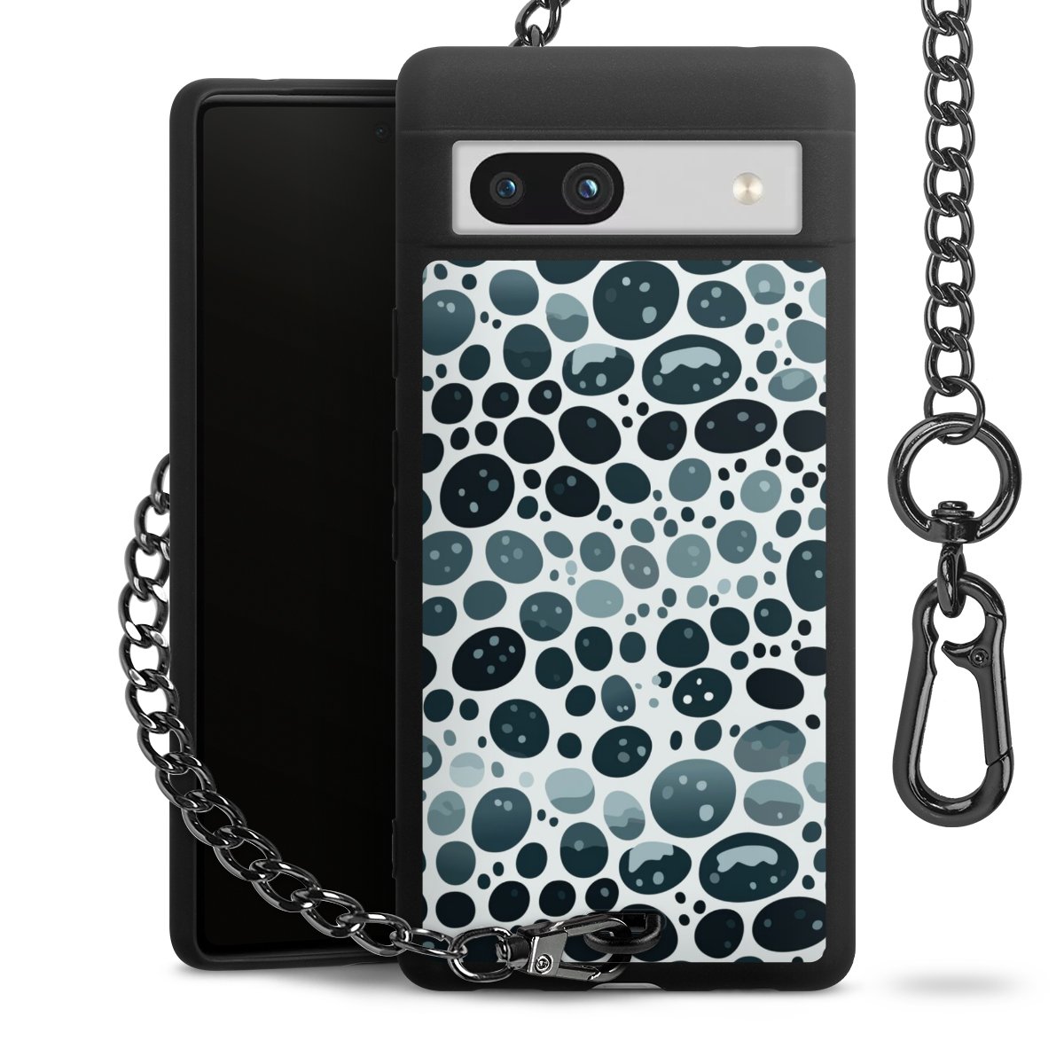 Die mattschwarze Silikon-Handyhülle besteht aus robustem TPU (thermoplastisches Polyurethan). Sie ist flexibel und schützt Dein Smartphone vor Stößen und Kratzern. Die Kette sowie der Karabinerhaken sind aus Metall in Gunmetal-Optik gefertigt. Für dieses Produkt kommen ausschließlich TÜV-geprüfte Materialien zum Einsatz.