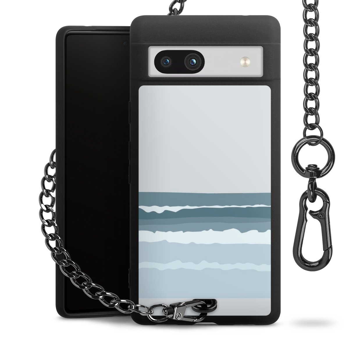 - Mattschwarze Handyhülle mit Metallkette