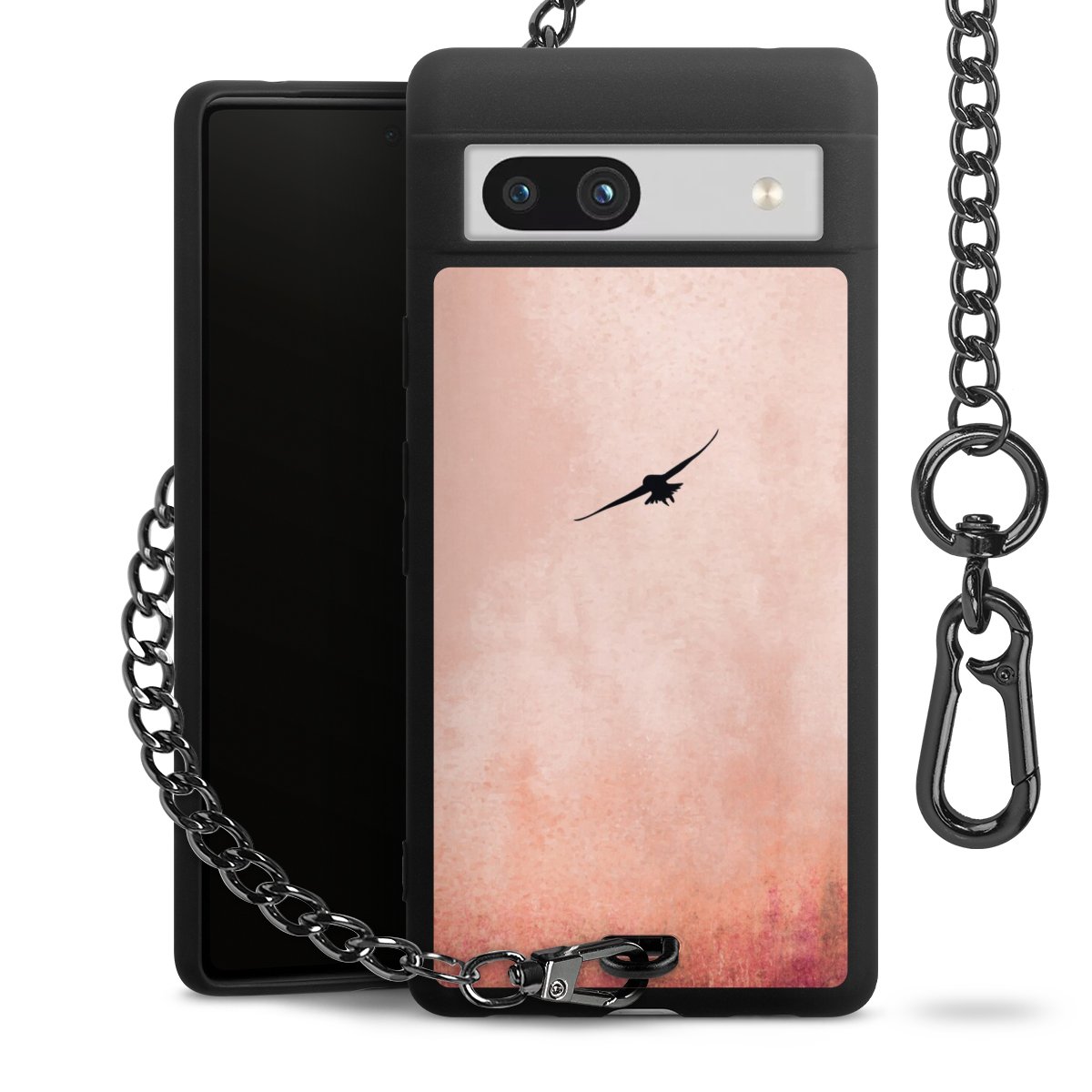 Die mattschwarze Silikon-Handyhülle besteht aus robustem TPU (thermoplastisches Polyurethan). Sie ist flexibel und schützt Dein Smartphone vor Stößen und Kratzern. Die Kette sowie der Karabinerhaken sind aus Metall in Gunmetal-Optik gefertigt. Für dieses Produkt kommen ausschließlich TÜV-geprüfte Materialien zum Einsatz.