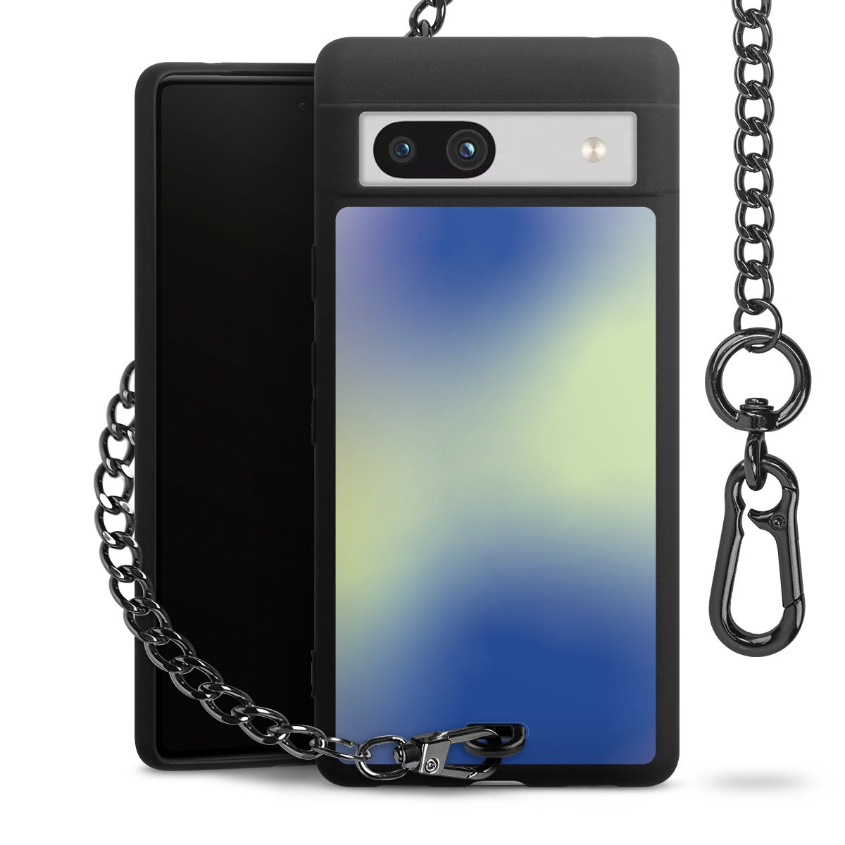 Die mattschwarze Silikon-Handyhülle besteht aus robustem TPU (thermoplastisches Polyurethan). Sie ist flexibel und schützt Dein Smartphone vor Stößen und Kratzern. Die Kette sowie der Karabinerhaken sind aus Metall in Gunmetal-Optik gefertigt. Für dieses Produkt kommen ausschließlich TÜV-geprüfte Materialien zum Einsatz.