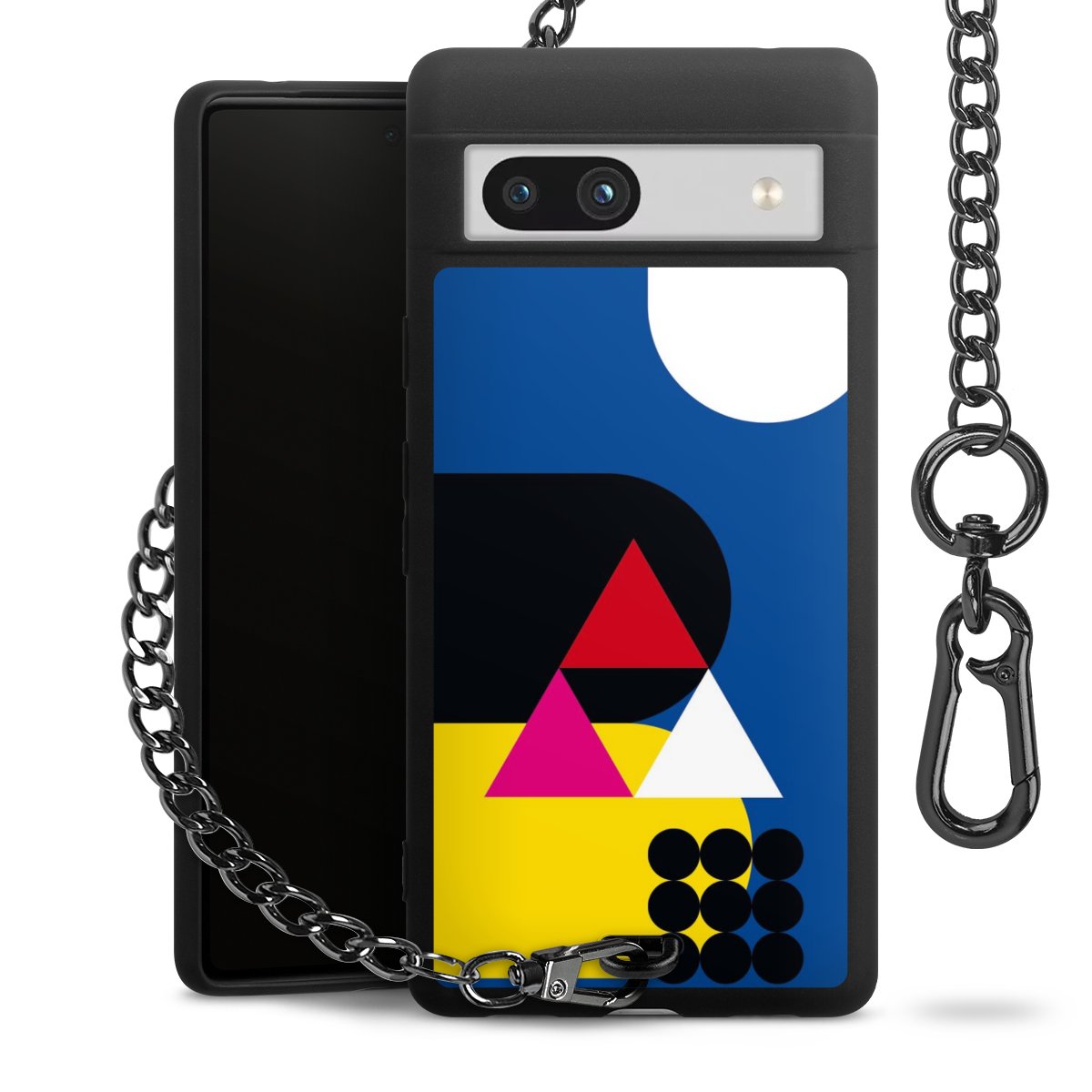 - Mattschwarze Handyhülle mit Metallkette