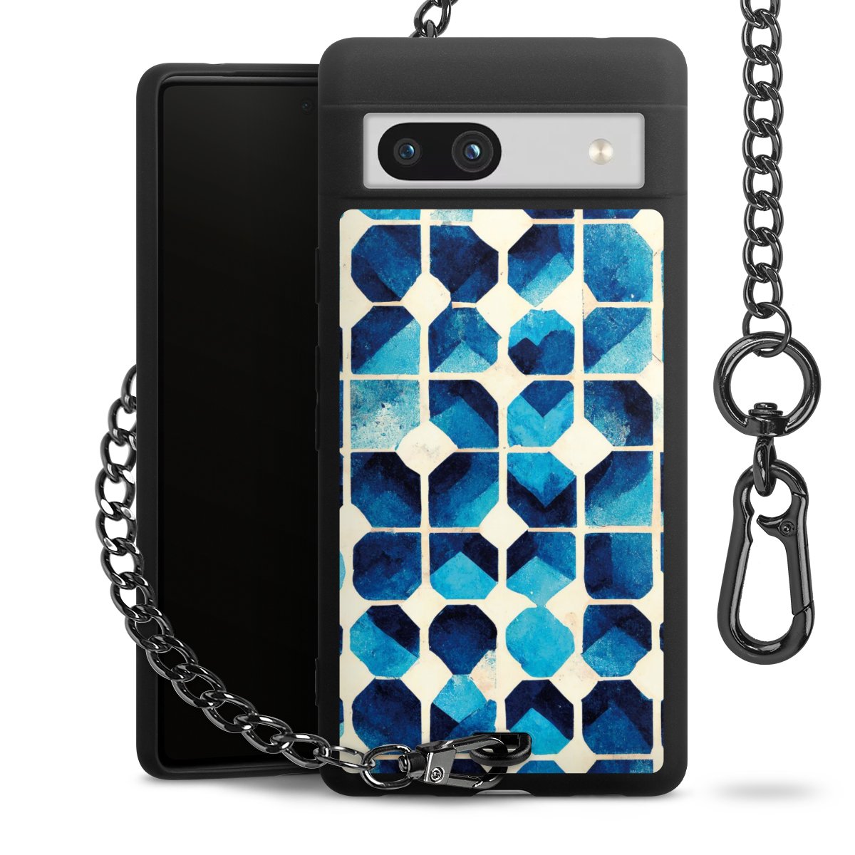 Die mattschwarze Silikon-Handyhülle besteht aus robustem TPU (thermoplastisches Polyurethan). Sie ist flexibel und schützt Dein Smartphone vor Stößen und Kratzern. Die Kette sowie der Karabinerhaken sind aus Metall in Gunmetal-Optik gefertigt. Für dieses Produkt kommen ausschließlich TÜV-geprüfte Materialien zum Einsatz.