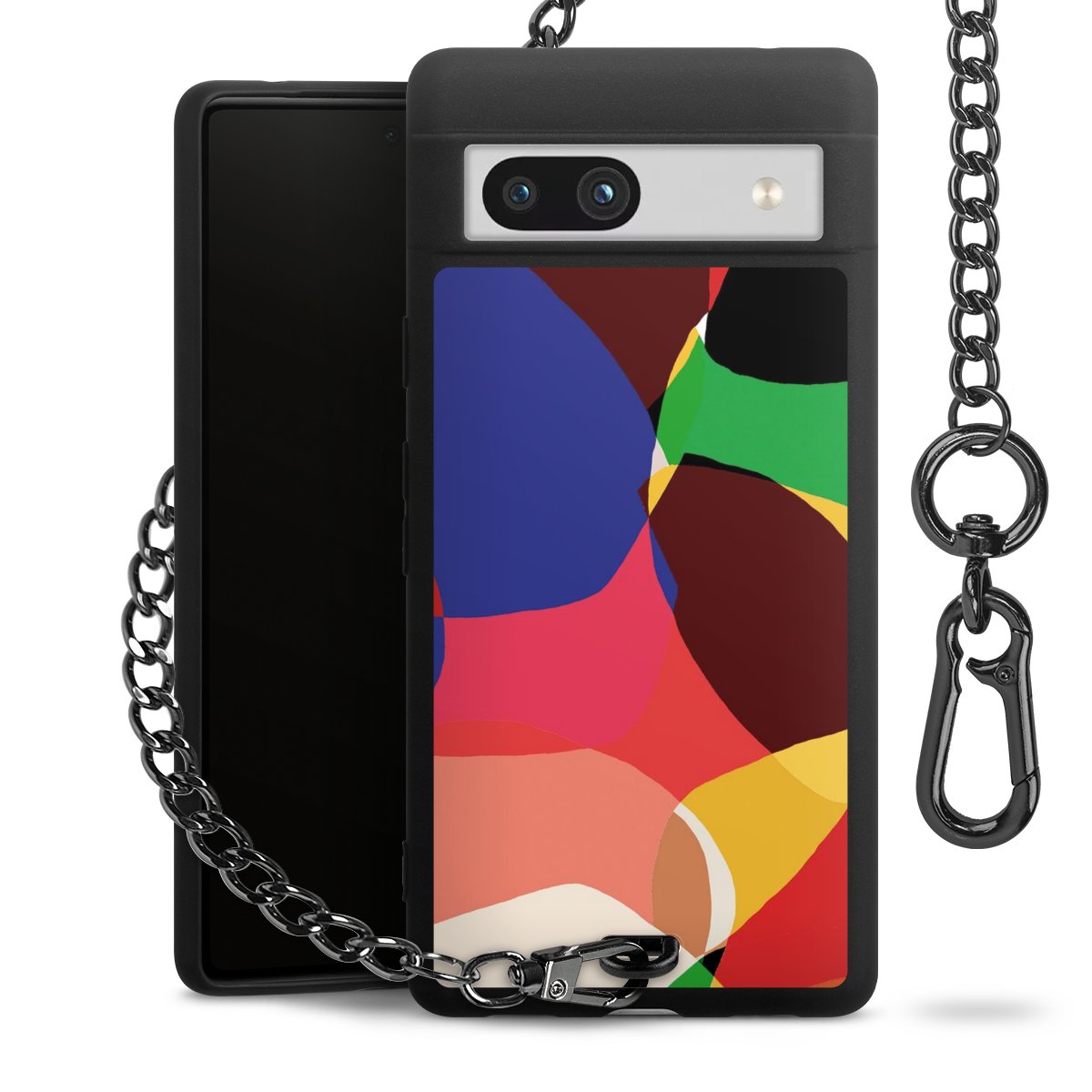 Die mattschwarze Silikon-Handyhülle besteht aus robustem TPU (thermoplastisches Polyurethan). Sie ist flexibel und schützt Dein Smartphone vor Stößen und Kratzern. Die Kette sowie der Karabinerhaken sind aus Metall in Gunmetal-Optik gefertigt. Für dieses Produkt kommen ausschließlich TÜV-geprüfte Materialien zum Einsatz.
