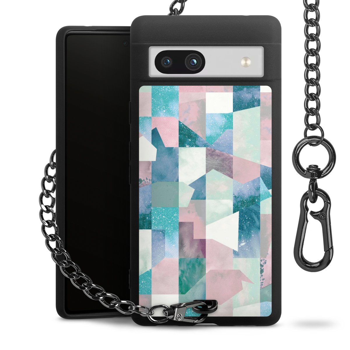 • Mattschwarze Handyhülle mit Metallkette