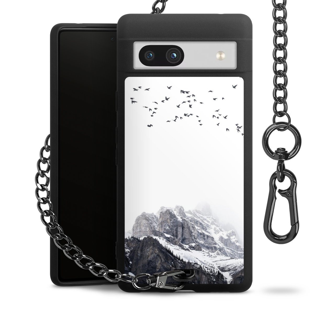 • Mattschwarze Handyhülle mit Metallkette