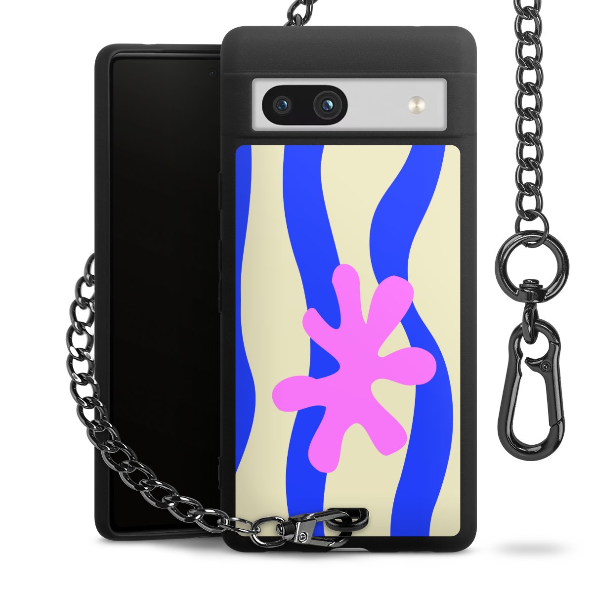 - Mattschwarze Handyhülle mit Metallkette