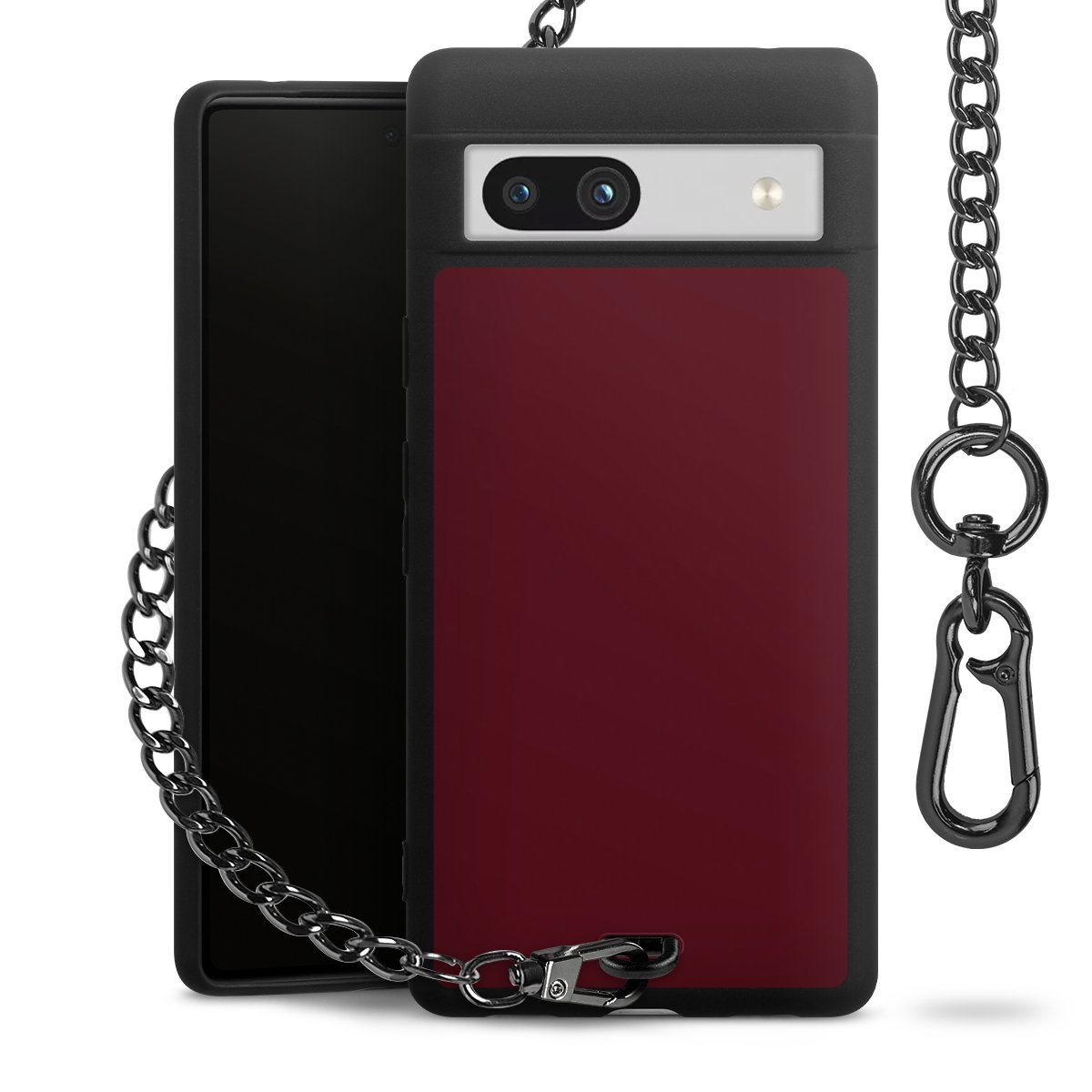 - Mattschwarze Handyhülle mit Metallkette