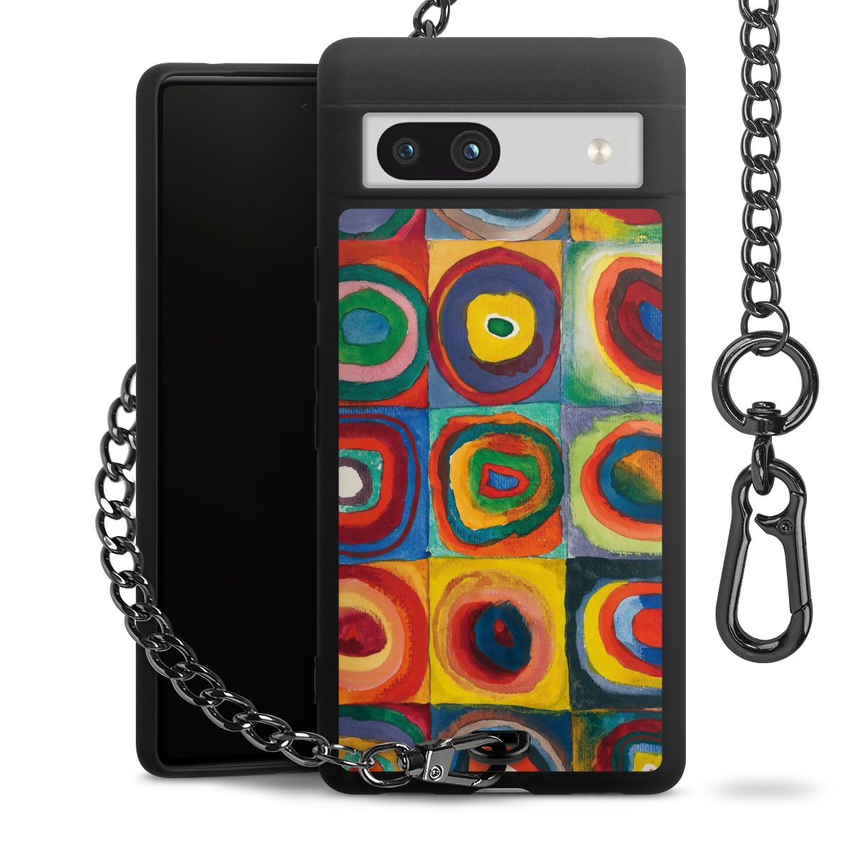 Die mattschwarze Silikon-Handyhülle besteht aus robustem TPU (thermoplastisches Polyurethan). Sie ist flexibel und schützt Dein Smartphone vor Stößen und Kratzern. Die Kette sowie der Karabinerhaken sind aus Metall in Gunmetal-Optik gefertigt. Für dieses Produkt kommen ausschließlich TÜV-geprüfte Materialien zum Einsatz.