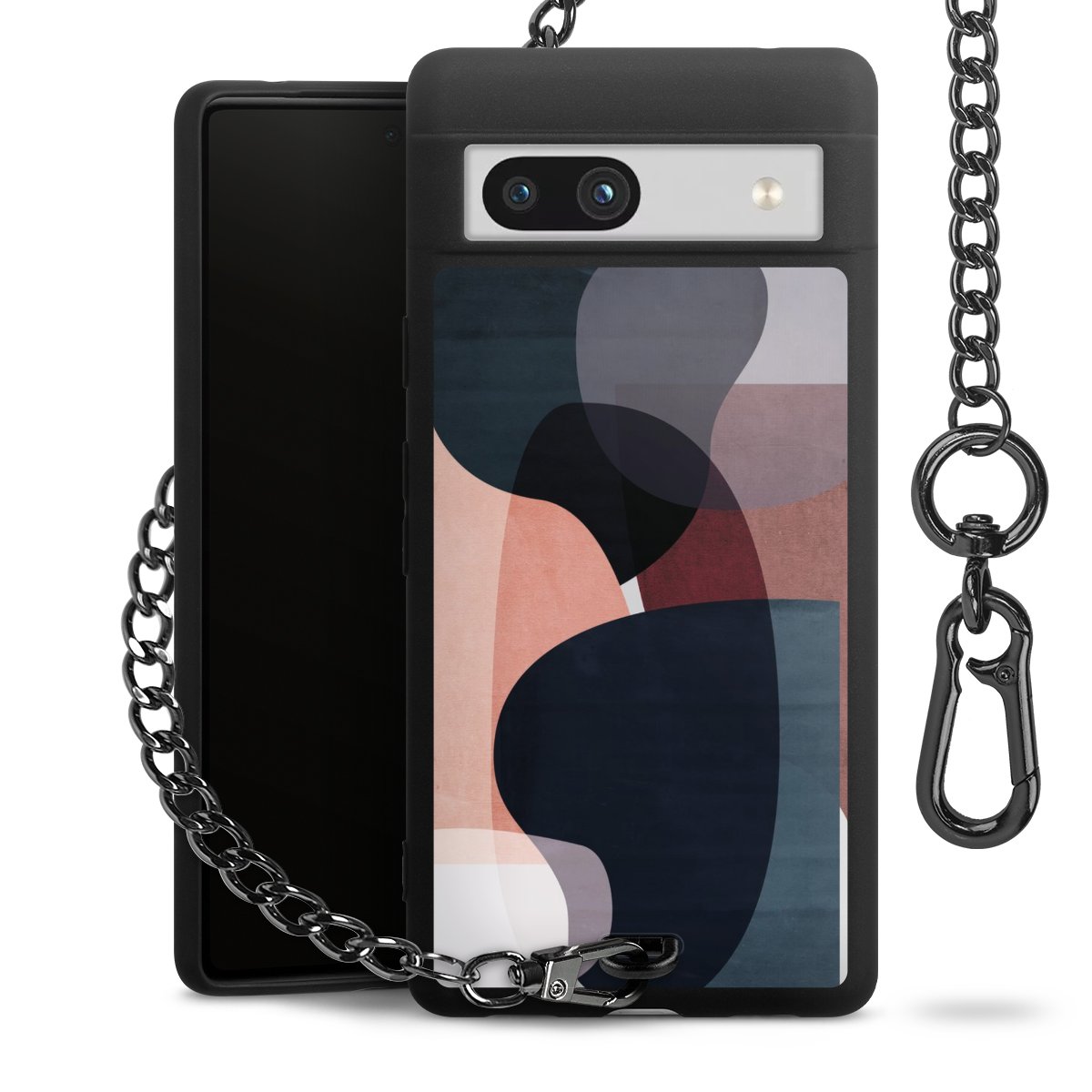 Die mattschwarze Silikon-Handyhülle besteht aus robustem TPU (thermoplastisches Polyurethan). Sie ist flexibel und schützt Dein Smartphone vor Stößen und Kratzern. Die Kette sowie der Karabinerhaken sind aus Metall in Gunmetal-Optik gefertigt. Für dieses Produkt kommen ausschließlich TÜV-geprüfte Materialien zum Einsatz.