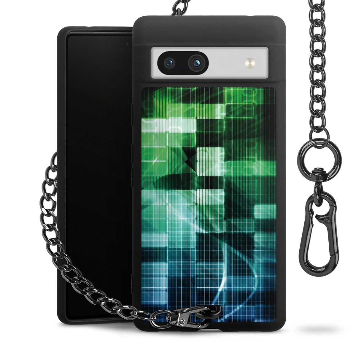 Die mattschwarze Silikon-Handyhülle besteht aus robustem TPU (thermoplastisches Polyurethan). Sie ist flexibel und schützt Dein Smartphone vor Stößen und Kratzern. Die Kette sowie der Karabinerhaken sind aus Metall in Gunmetal-Optik gefertigt. Für dieses Produkt kommen ausschließlich TÜV-geprüfte Materialien zum Einsatz.