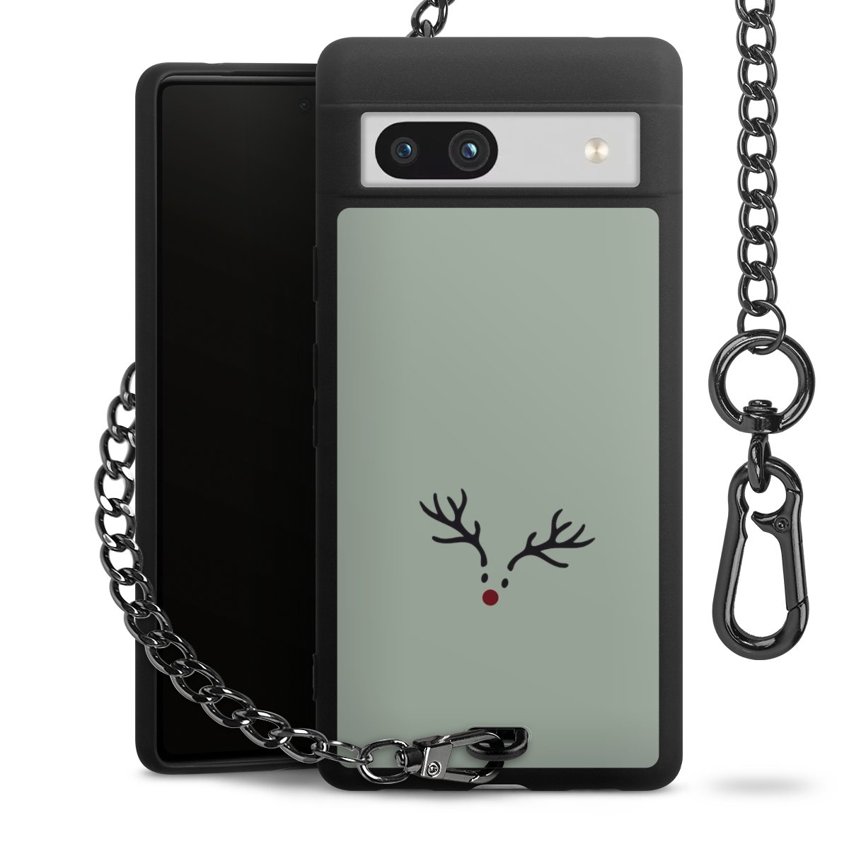 Die mattschwarze Silikon-Handyhülle besteht aus robustem TPU (thermoplastisches Polyurethan). Sie ist flexibel und schützt Dein Smartphone vor Stößen und Kratzern. Die Kette sowie der Karabinerhaken sind aus Metall in Gunmetal-Optik gefertigt. Für dieses Produkt kommen ausschließlich TÜV-geprüfte Materialien zum Einsatz.