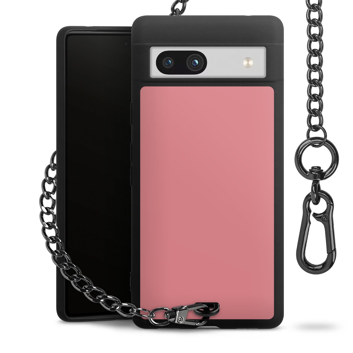- Mattschwarze Handyhülle mit Metallkette