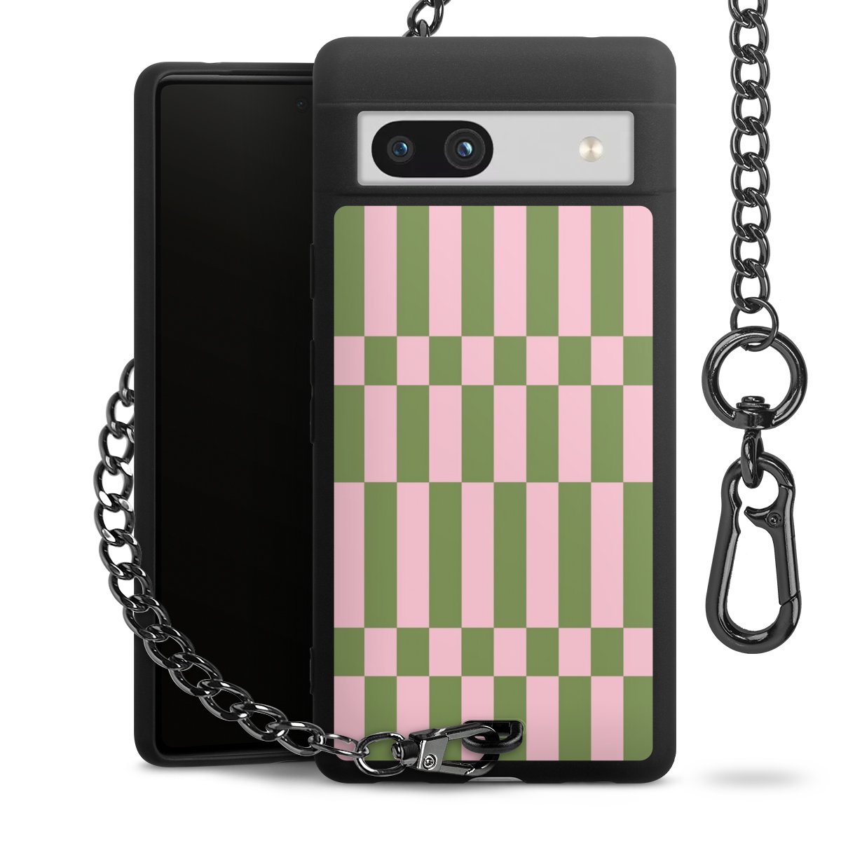 Die mattschwarze Silikon-Handyhülle besteht aus robustem TPU (thermoplastisches Polyurethan). Sie ist flexibel und schützt Dein Smartphone vor Stößen und Kratzern. Die Kette sowie der Karabinerhaken sind aus Metall in Gunmetal-Optik gefertigt. Für dieses Produkt kommen ausschließlich TÜV-geprüfte Materialien zum Einsatz.
