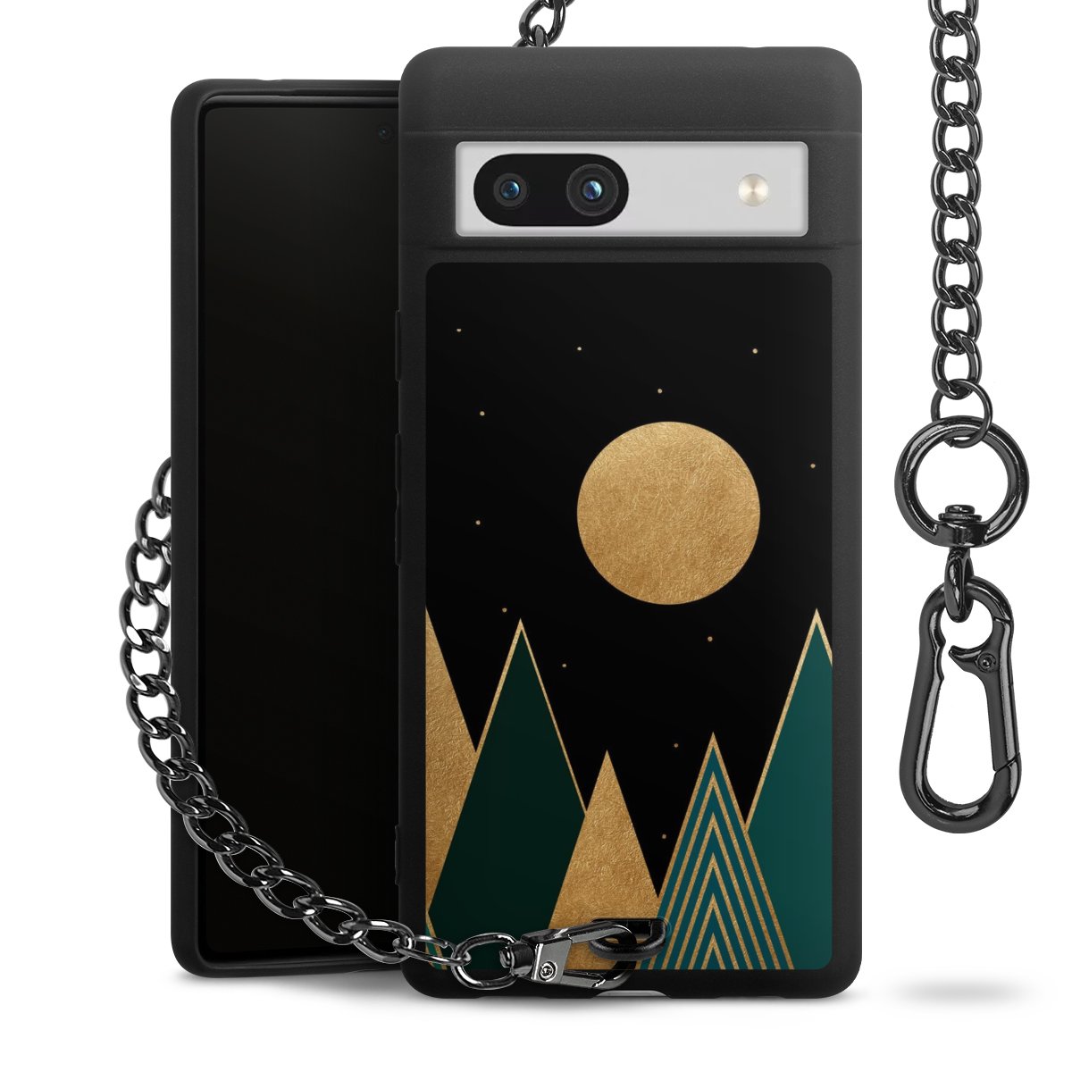 Die mattschwarze Silikon-Handyhülle besteht aus robustem TPU (thermoplastisches Polyurethan). Sie ist flexibel und schützt Dein Smartphone vor Stößen und Kratzern. Die Kette sowie der Karabinerhaken sind aus Metall in Gunmetal-Optik gefertigt. Für dieses Produkt kommen ausschließlich TÜV-geprüfte Materialien zum Einsatz.