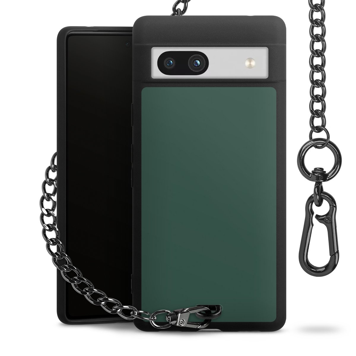 Die mattschwarze Silikon-Handyhülle besteht aus robustem TPU (thermoplastisches Polyurethan). Sie ist flexibel und schützt Dein Smartphone vor Stößen und Kratzern. Die Kette sowie der Karabinerhaken sind aus Metall in Gunmetal-Optik gefertigt. Für dieses Produkt kommen ausschließlich TÜV-geprüfte Materialien zum Einsatz.