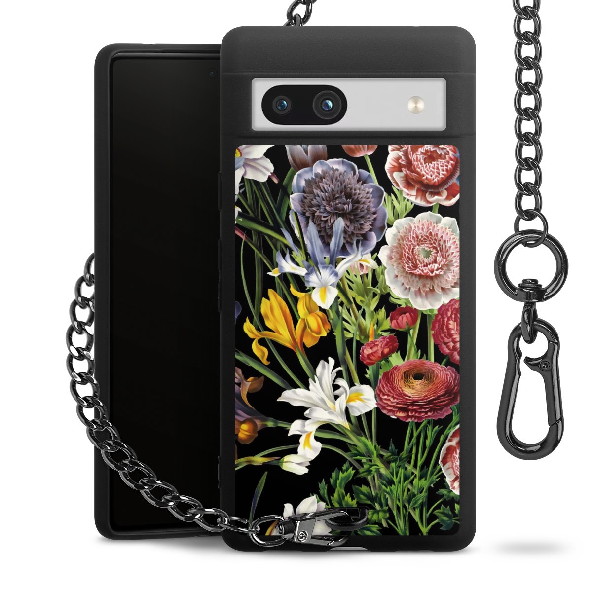 • Mattschwarze Handyhülle mit Metallkette