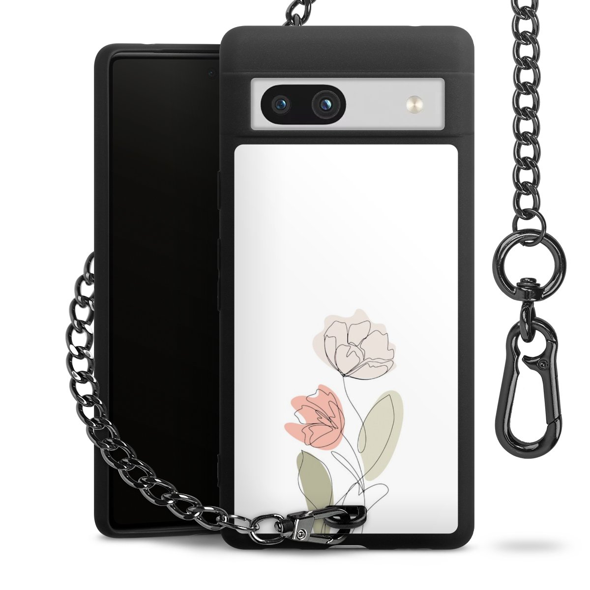 Die mattschwarze Silikon-Handyhülle besteht aus robustem TPU (thermoplastisches Polyurethan). Sie ist flexibel und schützt Dein Smartphone vor Stößen und Kratzern. Die Kette sowie der Karabinerhaken sind aus Metall in Gunmetal-Optik gefertigt. Für dieses Produkt kommen ausschließlich TÜV-geprüfte Materialien zum Einsatz.