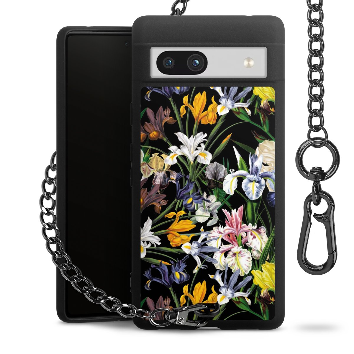 • Mattschwarze Handyhülle mit Metallkette