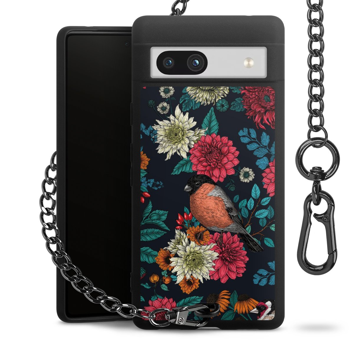 • Mattschwarze Handyhülle mit Metallkette