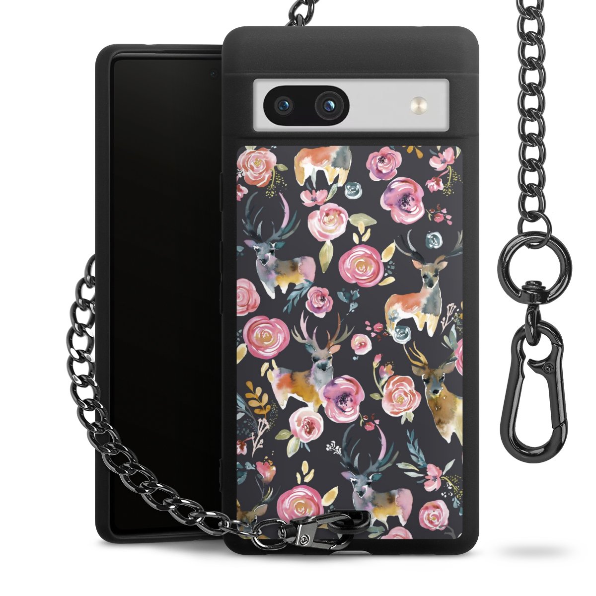 Die mattschwarze Silikon-Handyhülle besteht aus robustem TPU (thermoplastisches Polyurethan). Sie ist flexibel und schützt Dein Smartphone vor Stößen und Kratzern. Die Kette sowie der Karabinerhaken sind aus Metall in Gunmetal-Optik gefertigt. Für dieses Produkt kommen ausschließlich TÜV-geprüfte Materialien zum Einsatz.