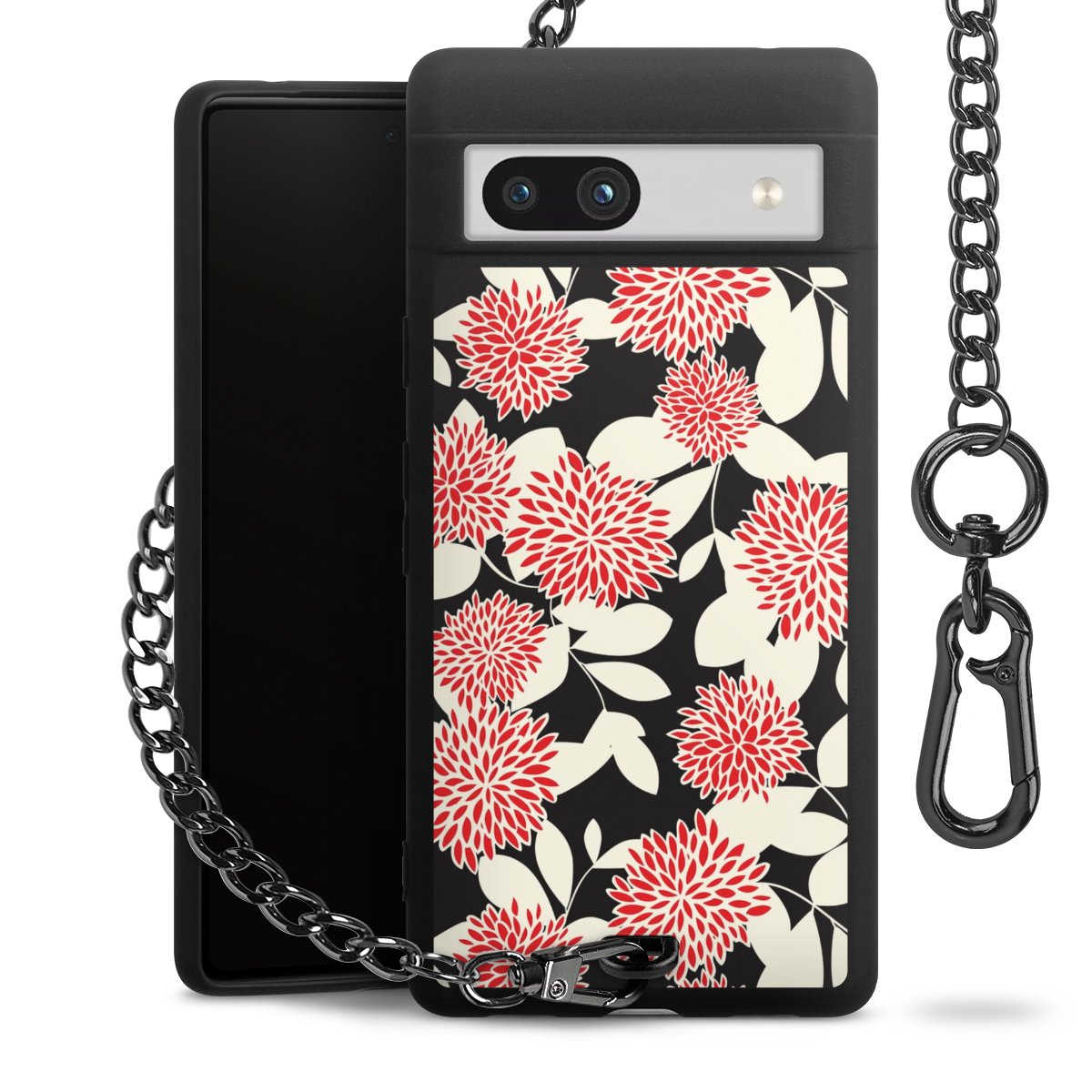 - Mattschwarze Handyhülle mit Metallkette