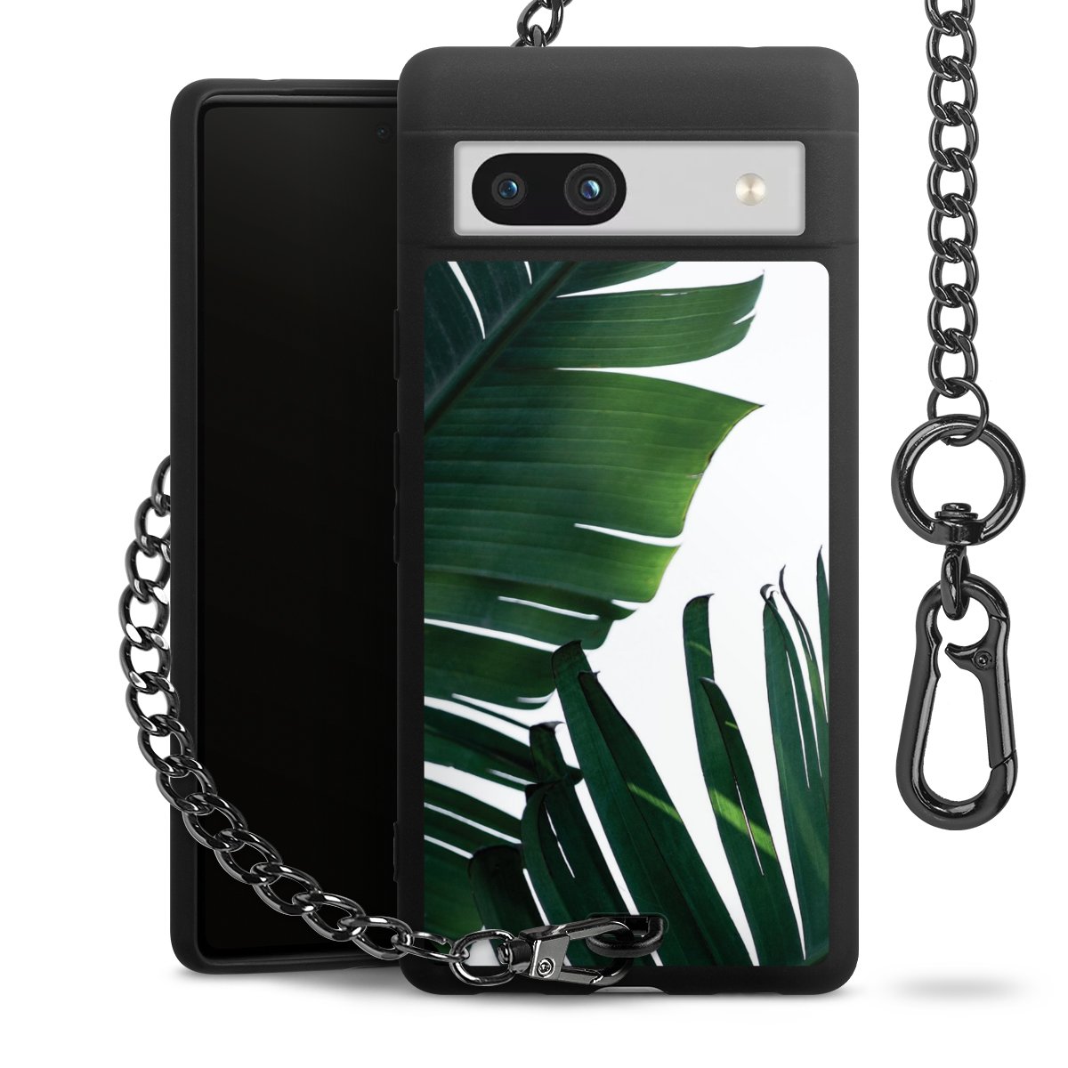 Die mattschwarze Silikon-Handyhülle besteht aus robustem TPU (thermoplastisches Polyurethan). Sie ist flexibel und schützt Dein Smartphone vor Stößen und Kratzern. Die Kette sowie der Karabinerhaken sind aus Metall in Gunmetal-Optik gefertigt. Für dieses Produkt kommen ausschließlich TÜV-geprüfte Materialien zum Einsatz.