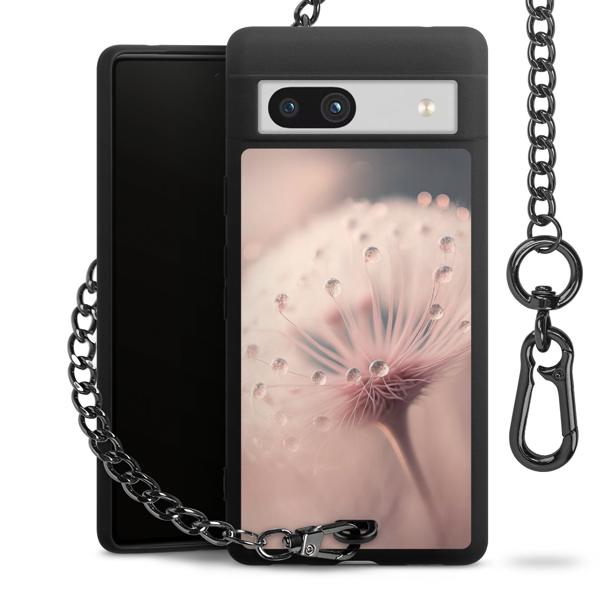 • Mattschwarze Handyhülle mit Metallkette