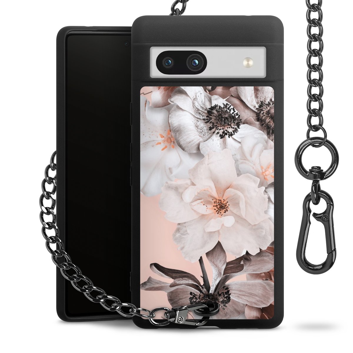 • Mattschwarze Handyhülle mit Metallkette