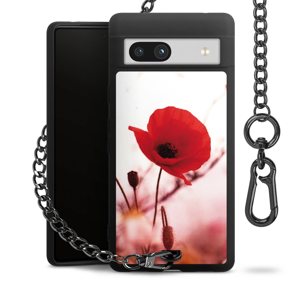 Die mattschwarze Silikon-Handyhülle besteht aus robustem TPU (thermoplastisches Polyurethan). Sie ist flexibel und schützt Dein Smartphone vor Stößen und Kratzern. Die Kette sowie der Karabinerhaken sind aus Metall in Gunmetal-Optik gefertigt. Für dieses Produkt kommen ausschließlich TÜV-geprüfte Materialien zum Einsatz.