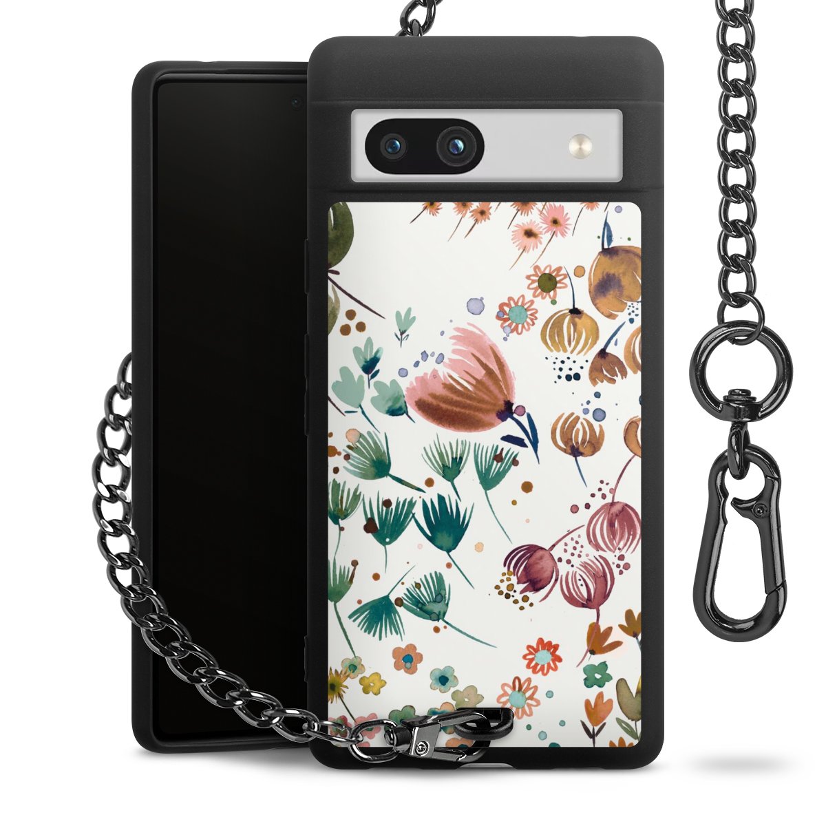 • Mattschwarze Handyhülle mit Metallkette