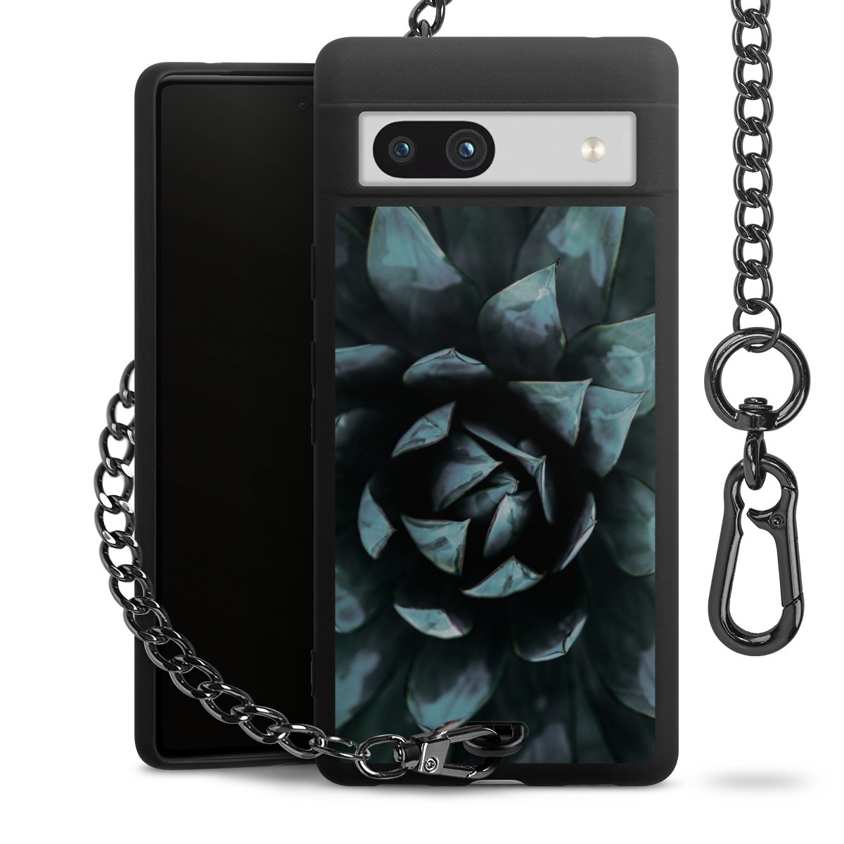 - Mattschwarze Handyhülle mit Metallkette