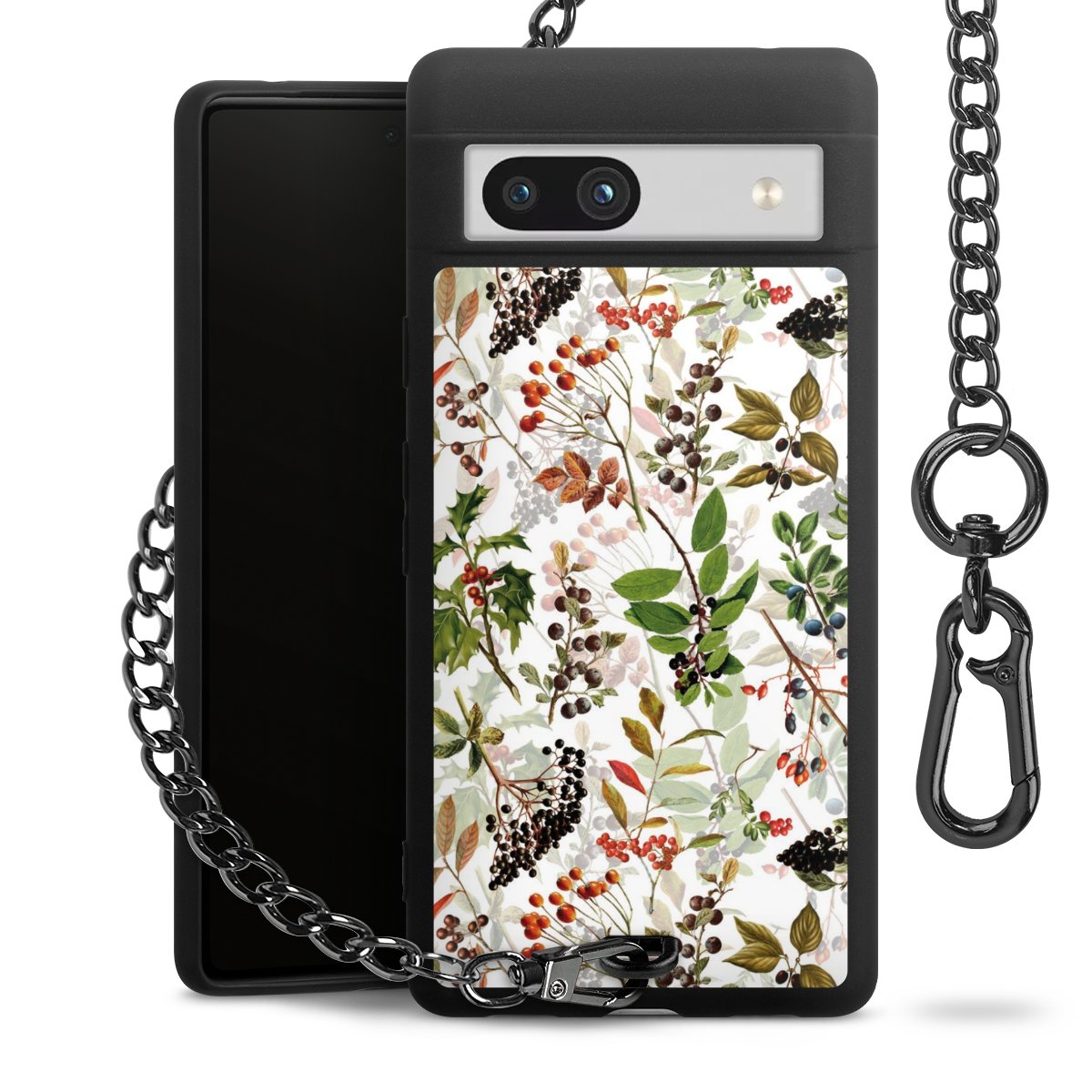 • Mattschwarze Handyhülle mit Metallkette
