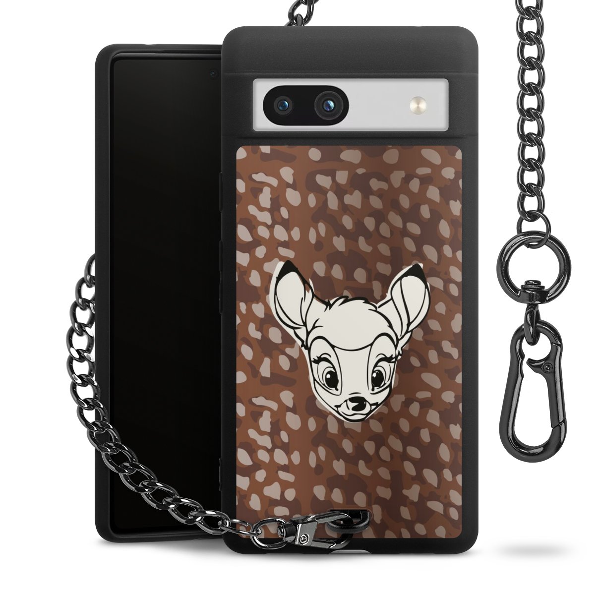 Die mattschwarze Silikon-Handyhülle besteht aus robustem TPU (thermoplastisches Polyurethan). Sie ist flexibel und schützt Dein Smartphone vor Stößen und Kratzern. Die Kette sowie der Karabinerhaken sind aus Metall in Gunmetal-Optik gefertigt. Für dieses Produkt kommen ausschließlich TÜV-geprüfte Materialien zum Einsatz.