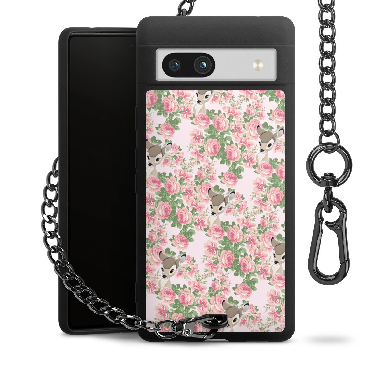Die mattschwarze Silikon-Handyhülle besteht aus robustem TPU (thermoplastisches Polyurethan). Sie ist flexibel und schützt Dein Smartphone vor Stößen und Kratzern. Die Kette sowie der Karabinerhaken sind aus Metall in Gunmetal-Optik gefertigt. Für dieses Produkt kommen ausschließlich TÜV-geprüfte Materialien zum Einsatz.