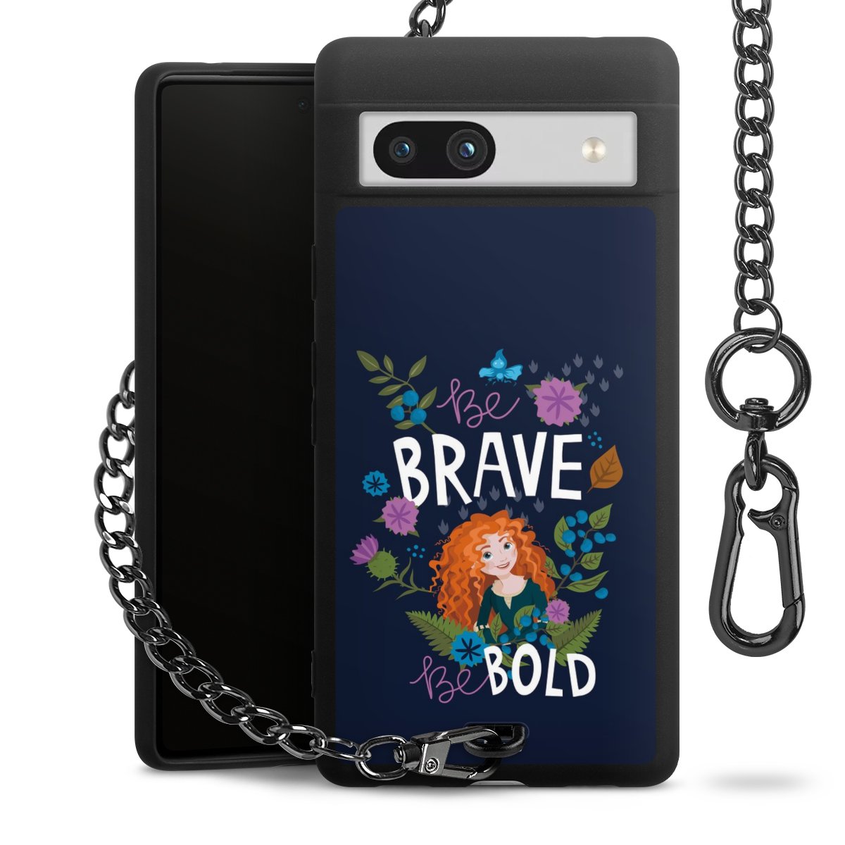 - Mattschwarze Handyhülle mit Metallkette