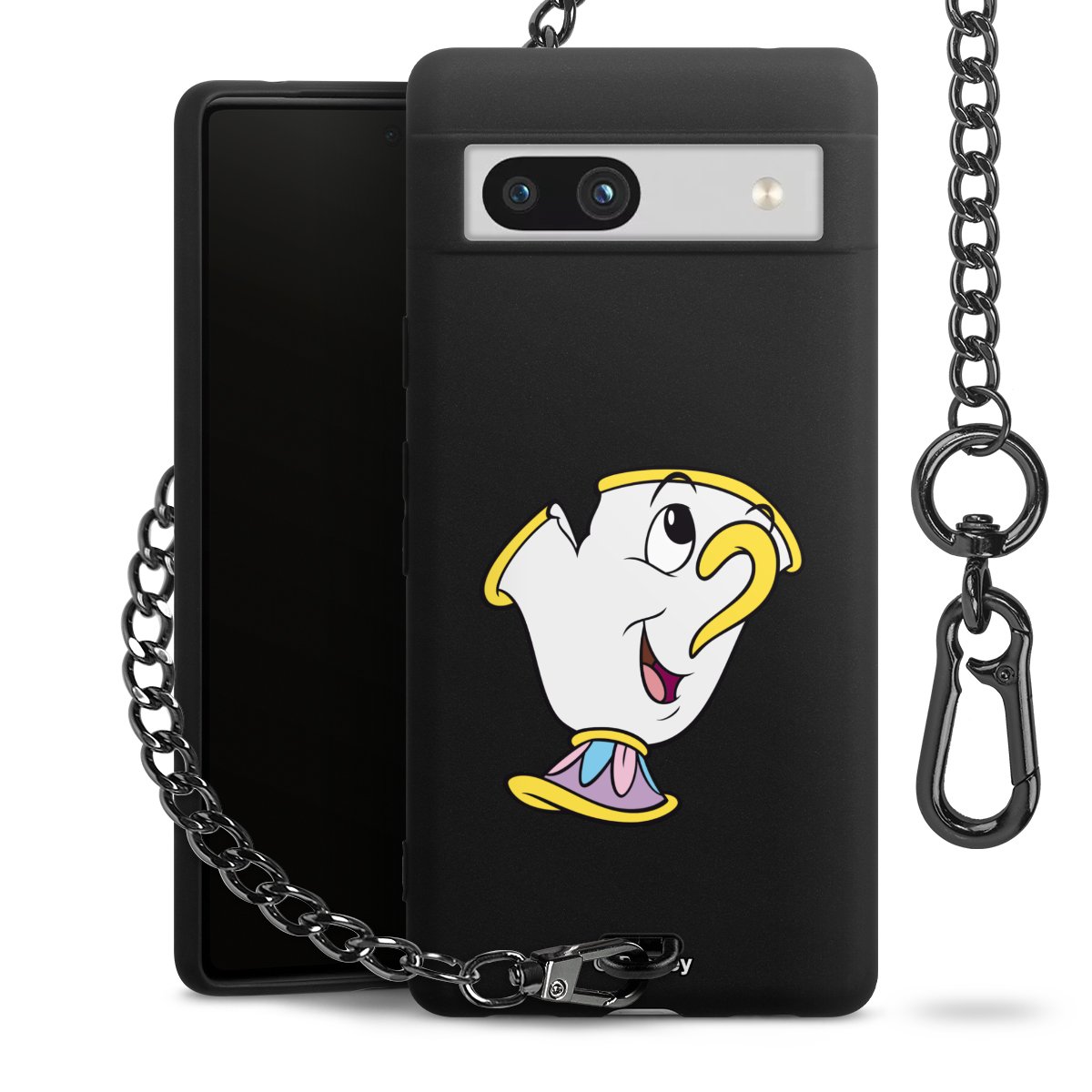 Die mattschwarze Silikon-Handyhülle besteht aus robustem TPU (thermoplastisches Polyurethan). Sie ist flexibel und schützt Dein Smartphone vor Stößen und Kratzern. Die Kette sowie der Karabinerhaken sind aus Metall in Gunmetal-Optik gefertigt. Für dieses Produkt kommen ausschließlich TÜV-geprüfte Materialien zum Einsatz.