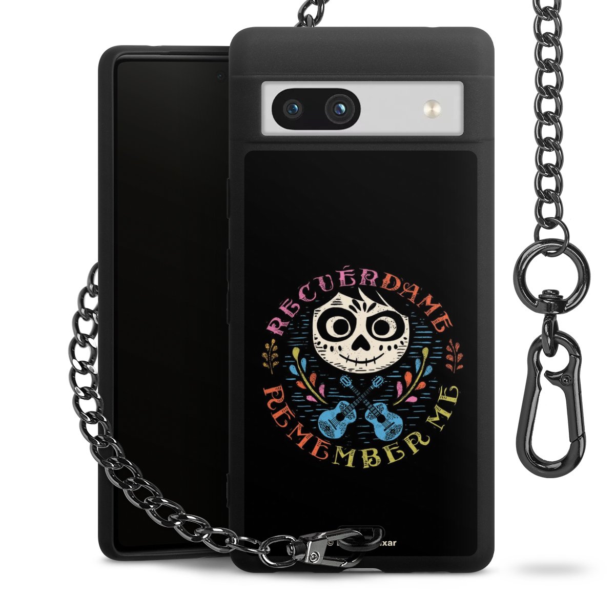 Die mattschwarze Silikon-Handyhülle besteht aus robustem TPU (thermoplastisches Polyurethan). Sie ist flexibel und schützt Dein Smartphone vor Stößen und Kratzern. Die Kette sowie der Karabinerhaken sind aus Metall in Gunmetal-Optik gefertigt. Für dieses Produkt kommen ausschließlich TÜV-geprüfte Materialien zum Einsatz.