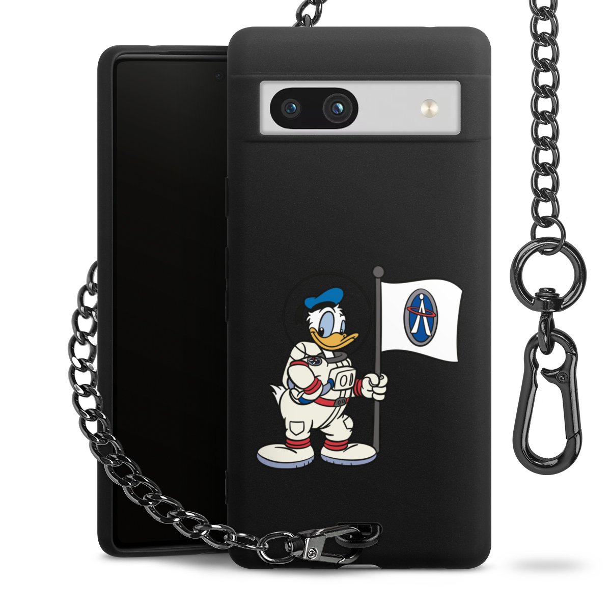Die mattschwarze Silikon-Handyhülle besteht aus robustem TPU (thermoplastisches Polyurethan). Sie ist flexibel und schützt Dein Smartphone vor Stößen und Kratzern. Die Kette sowie der Karabinerhaken sind aus Metall in Gunmetal-Optik gefertigt. Für dieses Produkt kommen ausschließlich TÜV-geprüfte Materialien zum Einsatz.