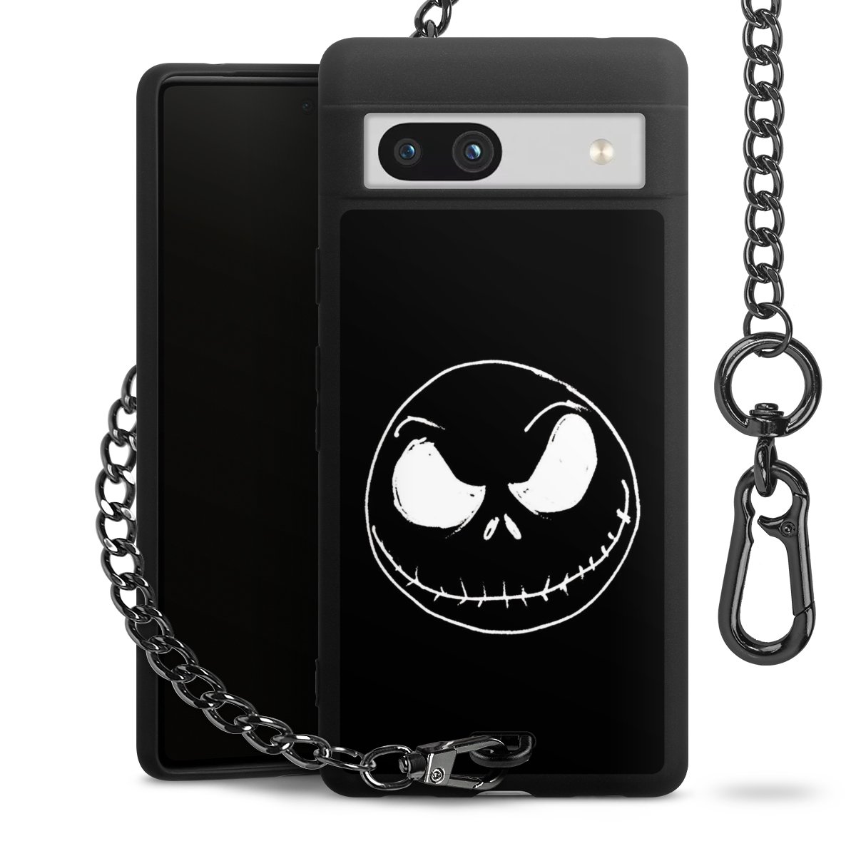 Die mattschwarze Silikon-Handyhülle besteht aus robustem TPU (thermoplastisches Polyurethan). Sie ist flexibel und schützt Dein Smartphone vor Stößen und Kratzern. Die Kette sowie der Karabinerhaken sind aus Metall in Gunmetal-Optik gefertigt. Für dieses Produkt kommen ausschließlich TÜV-geprüfte Materialien zum Einsatz.