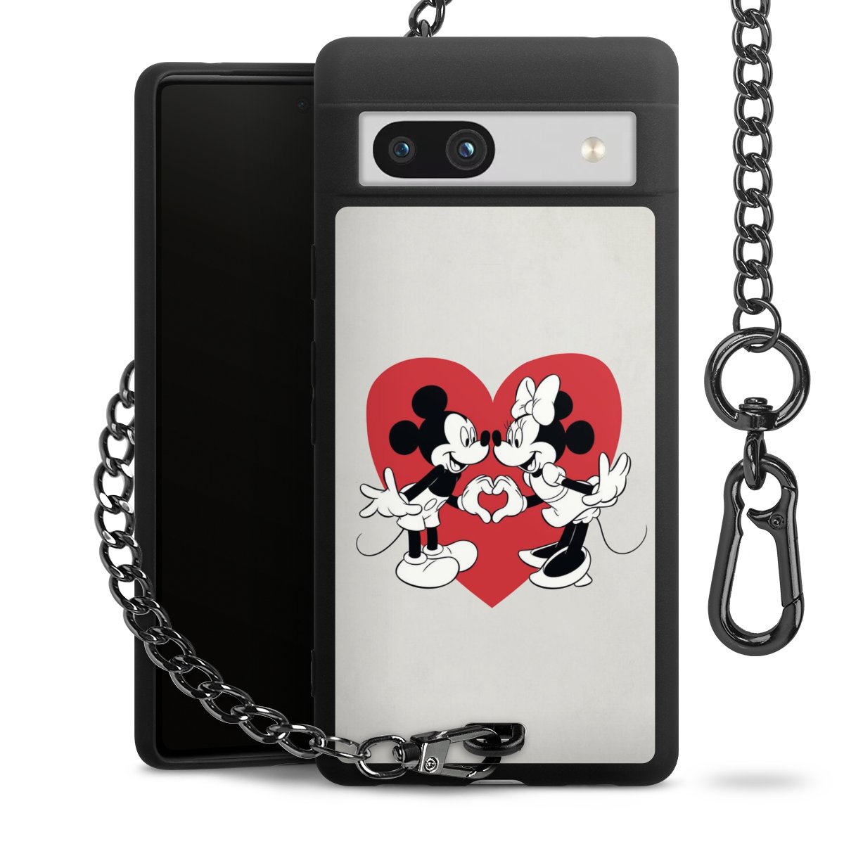 Die mattschwarze Silikon-Handyhülle besteht aus robustem TPU (thermoplastisches Polyurethan). Sie ist flexibel und schützt Dein Smartphone vor Stößen und Kratzern. Die Kette sowie der Karabinerhaken sind aus Metall in Gunmetal-Optik gefertigt. Für dieses Produkt kommen ausschließlich TÜV-geprüfte Materialien zum Einsatz.