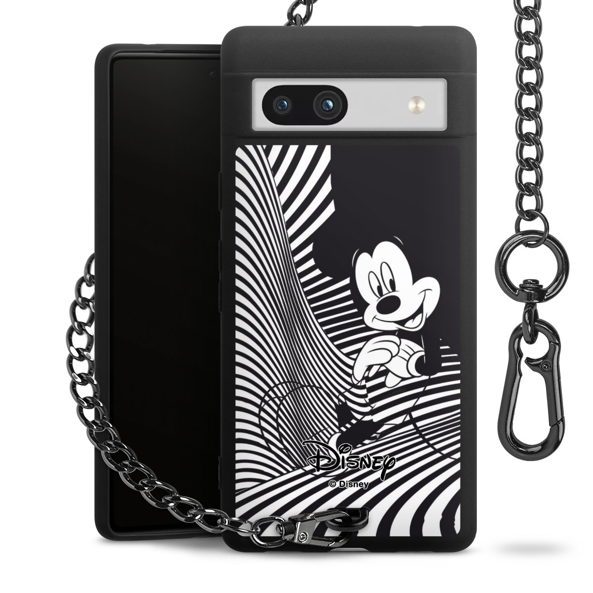 Die mattschwarze Silikon-Handyhülle besteht aus robustem TPU (thermoplastisches Polyurethan). Sie ist flexibel und schützt Dein Smartphone vor Stößen und Kratzern. Die Kette sowie der Karabinerhaken sind aus Metall in Gunmetal-Optik gefertigt. Für dieses Produkt kommen ausschließlich TÜV-geprüfte Materialien zum Einsatz.