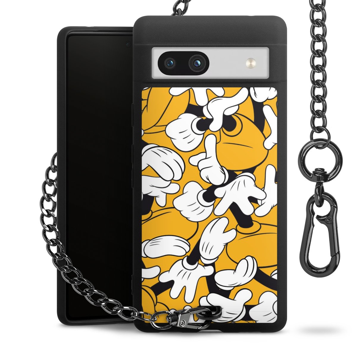 Die mattschwarze Silikon-Handyhülle besteht aus robustem TPU (thermoplastisches Polyurethan). Sie ist flexibel und schützt Dein Smartphone vor Stößen und Kratzern. Die Kette sowie der Karabinerhaken sind aus Metall in Gunmetal-Optik gefertigt. Für dieses Produkt kommen ausschließlich TÜV-geprüfte Materialien zum Einsatz.