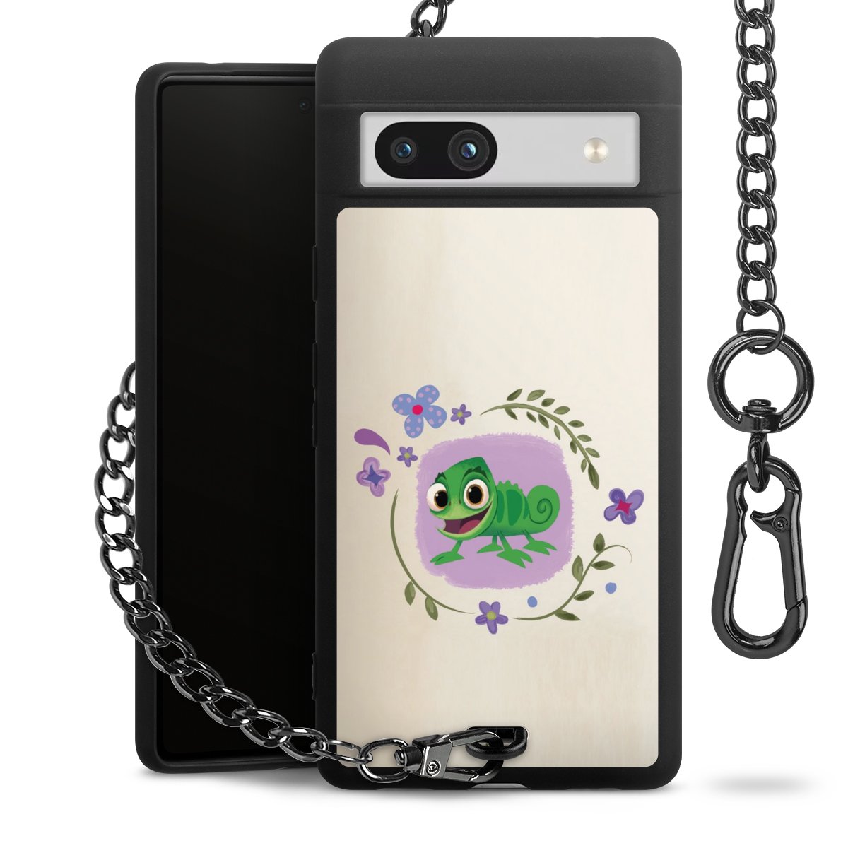 Die mattschwarze Silikon-Handyhülle besteht aus robustem TPU (thermoplastisches Polyurethan). Sie ist flexibel und schützt Dein Smartphone vor Stößen und Kratzern. Die Kette sowie der Karabinerhaken sind aus Metall in Gunmetal-Optik gefertigt. Für dieses Produkt kommen ausschließlich TÜV-geprüfte Materialien zum Einsatz.