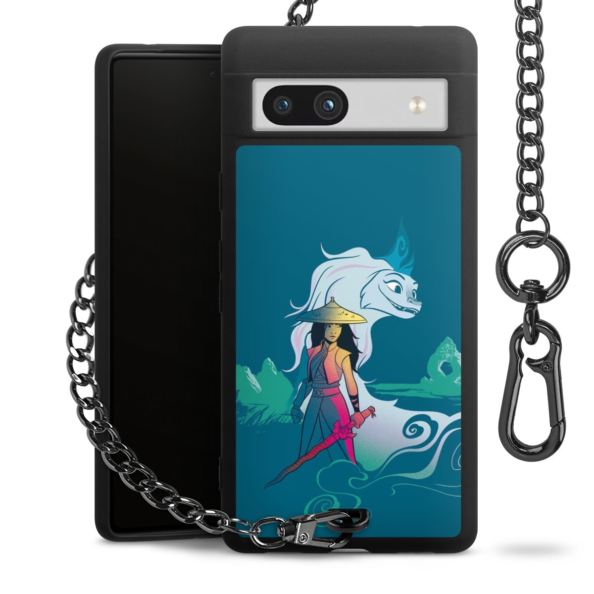 Die mattschwarze Silikon-Handyhülle besteht aus robustem TPU (thermoplastisches Polyurethan). Sie ist flexibel und schützt Dein Smartphone vor Stößen und Kratzern. Die Kette sowie der Karabinerhaken sind aus Metall in Gunmetal-Optik gefertigt. Für dieses Produkt kommen ausschließlich TÜV-geprüfte Materialien zum Einsatz.