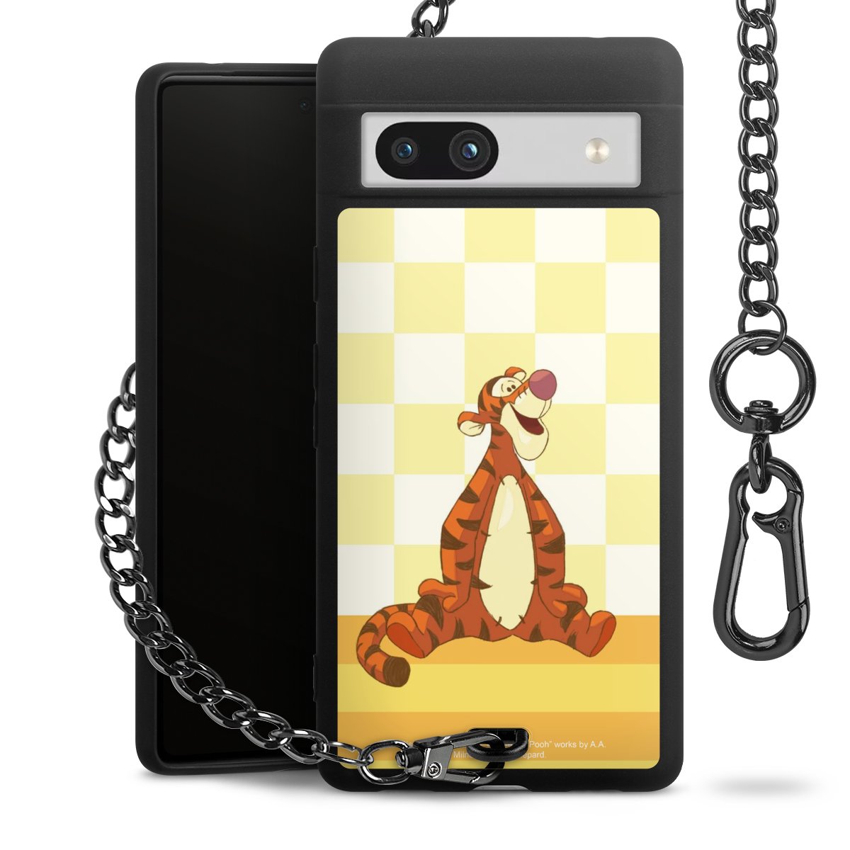 Die mattschwarze Silikon-Handyhülle besteht aus robustem TPU (thermoplastisches Polyurethan). Sie ist flexibel und schützt Dein Smartphone vor Stößen und Kratzern. Die Kette sowie der Karabinerhaken sind aus Metall in Gunmetal-Optik gefertigt. Für dieses Produkt kommen ausschließlich TÜV-geprüfte Materialien zum Einsatz.