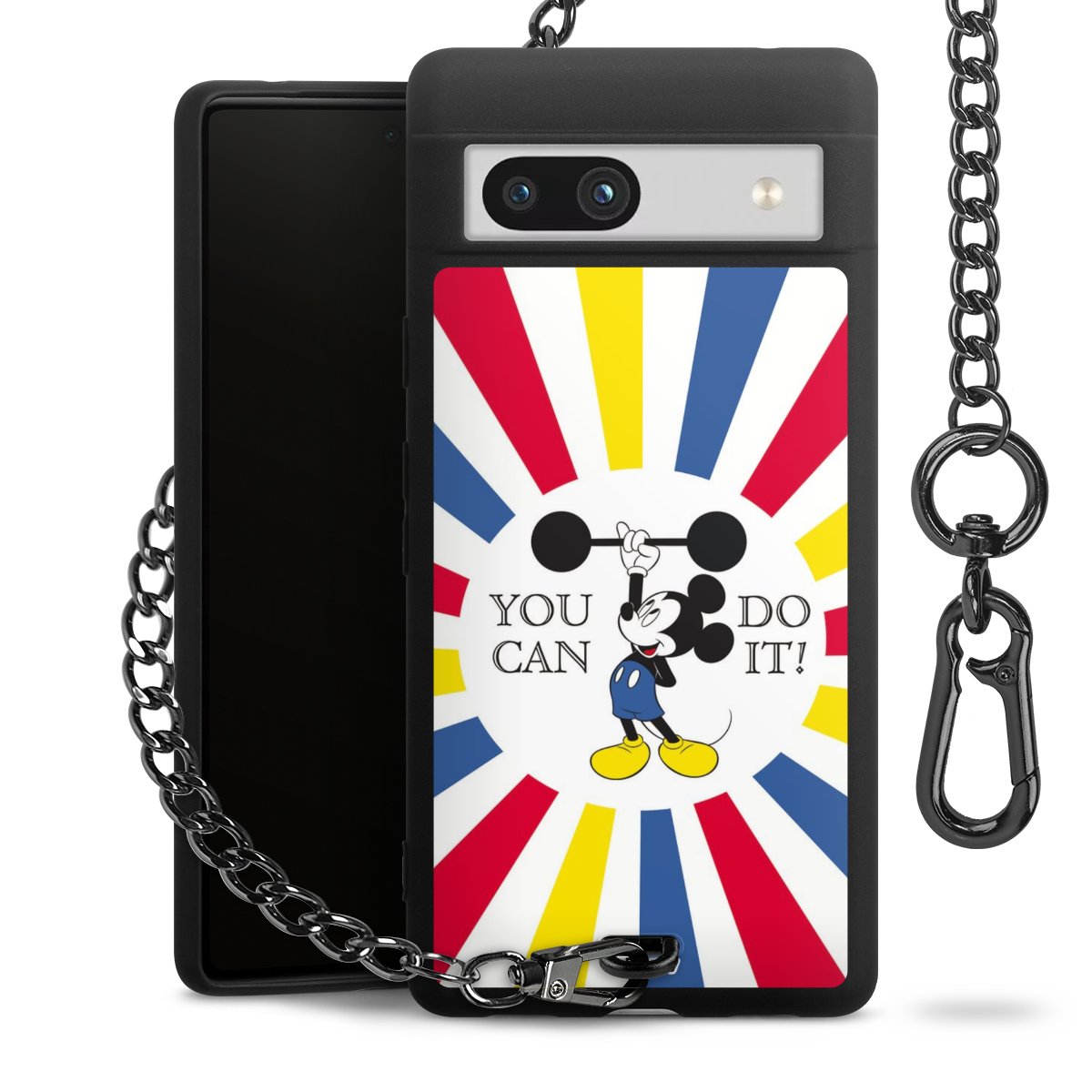 Die mattschwarze Silikon-Handyhülle besteht aus robustem TPU (thermoplastisches Polyurethan). Sie ist flexibel und schützt Dein Smartphone vor Stößen und Kratzern. Die Kette sowie der Karabinerhaken sind aus Metall in Gunmetal-Optik gefertigt. Für dieses Produkt kommen ausschließlich TÜV-geprüfte Materialien zum Einsatz.