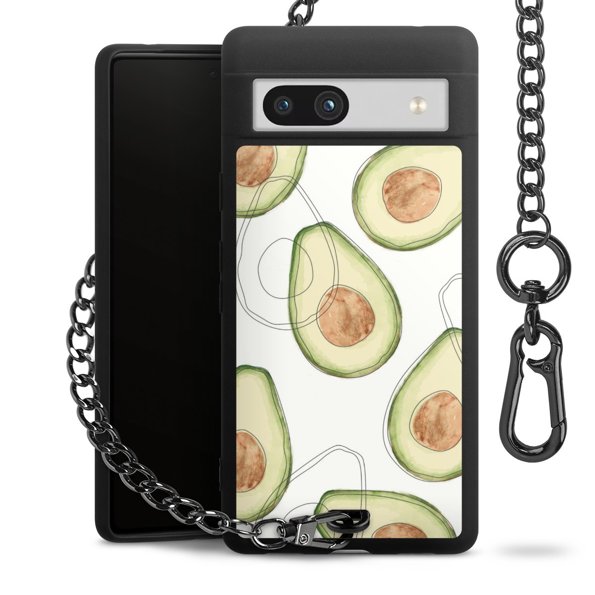 Die mattschwarze Silikon-Handyhülle besteht aus robustem TPU (thermoplastisches Polyurethan). Sie ist flexibel und schützt Dein Smartphone vor Stößen und Kratzern. Die Kette sowie der Karabinerhaken sind aus Metall in Gunmetal-Optik gefertigt. Für dieses Produkt kommen ausschließlich TÜV-geprüfte Materialien zum Einsatz.