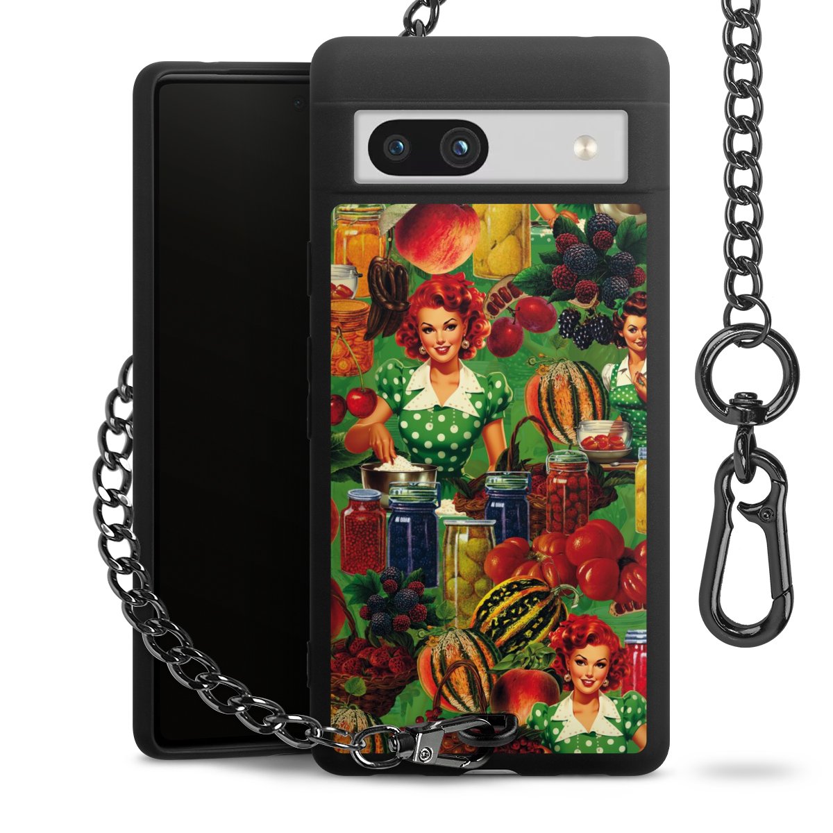 Die mattschwarze Silikon-Handyhülle besteht aus robustem TPU (thermoplastisches Polyurethan). Sie ist flexibel und schützt Dein Smartphone vor Stößen und Kratzern. Die Kette sowie der Karabinerhaken sind aus Metall in Gunmetal-Optik gefertigt. Für dieses Produkt kommen ausschließlich TÜV-geprüfte Materialien zum Einsatz.