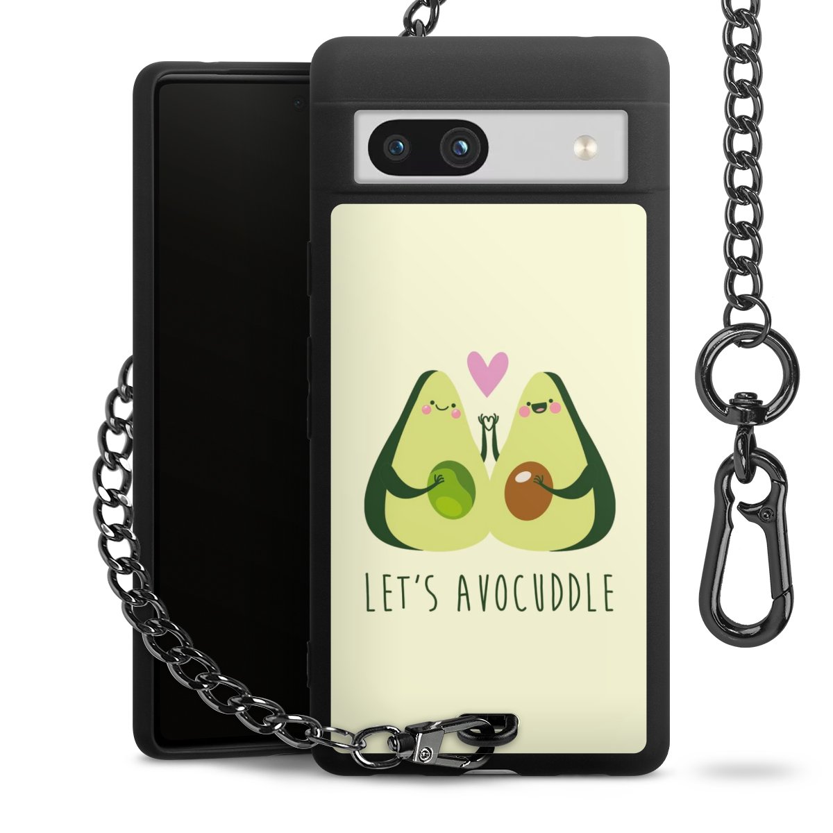 Die mattschwarze Silikon-Handyhülle besteht aus robustem TPU (thermoplastisches Polyurethan). Sie ist flexibel und schützt Dein Smartphone vor Stößen und Kratzern. Die Kette sowie der Karabinerhaken sind aus Metall in Gunmetal-Optik gefertigt. Für dieses Produkt kommen ausschließlich TÜV-geprüfte Materialien zum Einsatz.