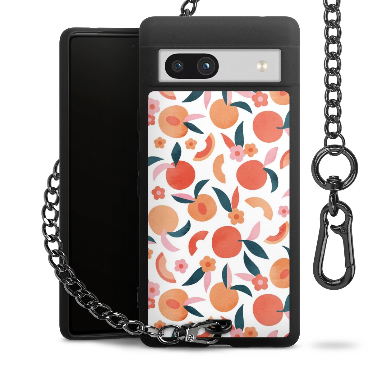 • Mattschwarze Handyhülle mit Metallkette